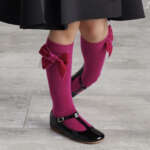 Sýtoružové podkolienky s veľkou zamatovou mašľou, ktorá pekne drží tvar. Materiál: 75% bavlna, 22% nylon, 3% lycra.