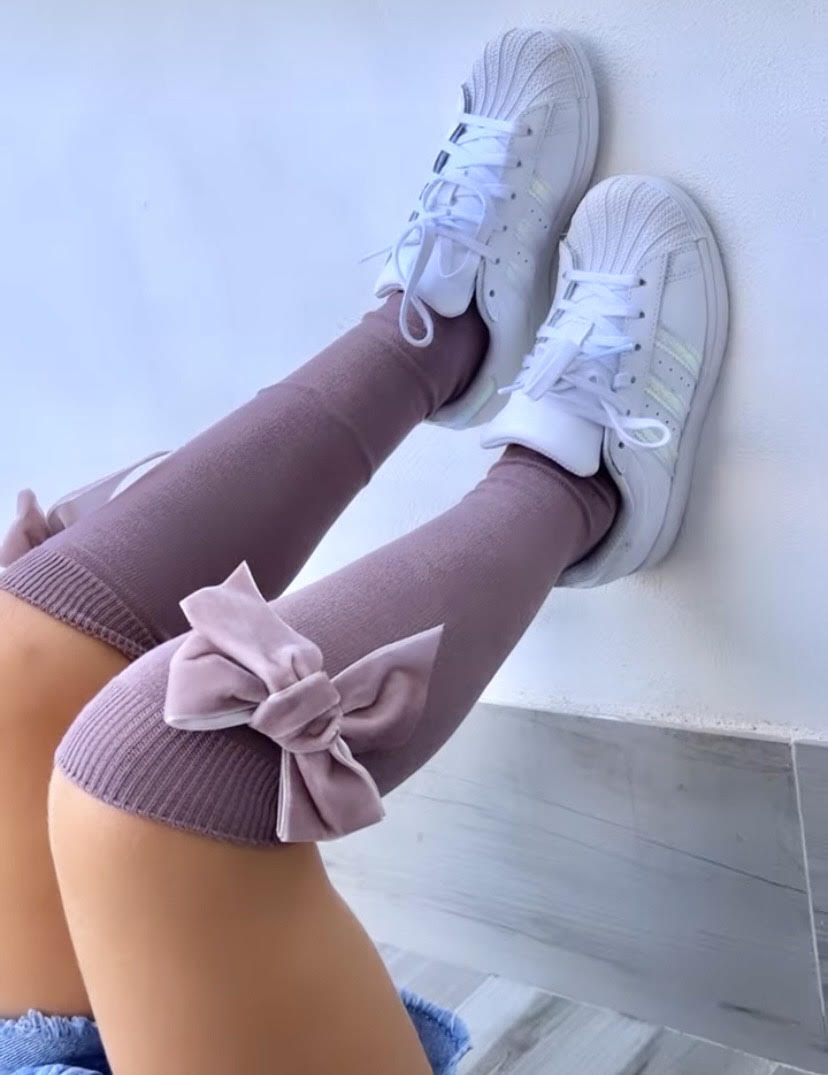Knee high socks with velvet bow iris.