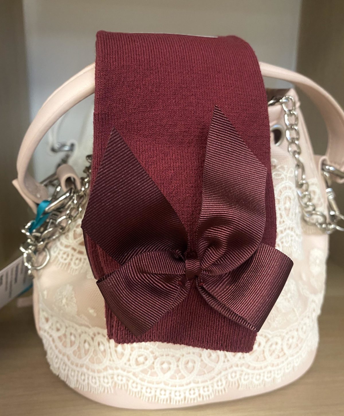 Hladké podkolienky so saténovou mašľou vo farbe vínová. Podkolienky španielskej značky Cóndor. Sú stálofarebné a držia aj po vypraní tvar. Podkolienky s krásnou saténovou mašľou budú zdobiť nožičky vašich detičiek.