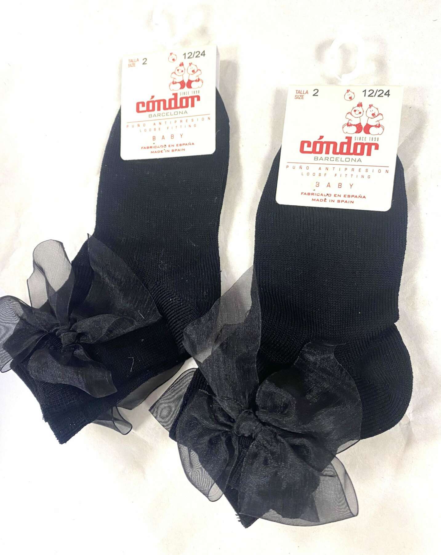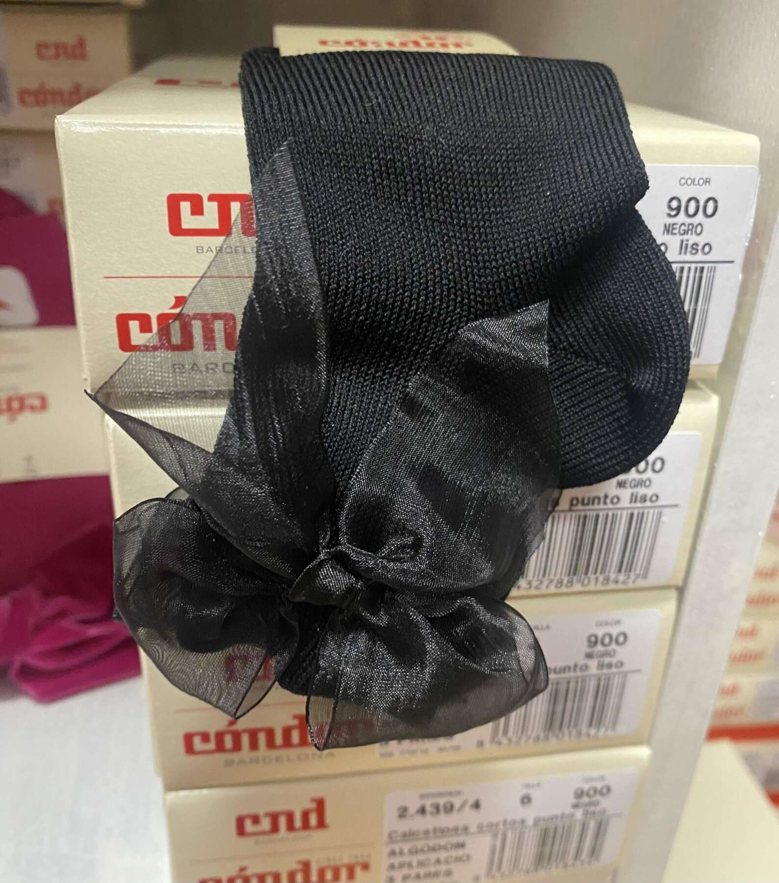 Hladké ponožky s tylovou mašľou ceremonia organza Cóndor čierna