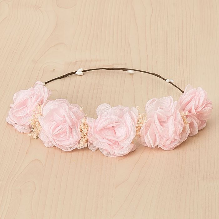 Korunka čelenka ružová kvetovaná Crown big flower light pink O