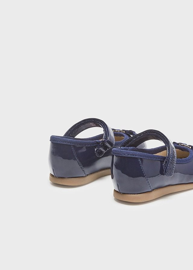 Lakované balerínky s mašľou Ballet pump patent leather effect baby girl Mayoral tmavomodré