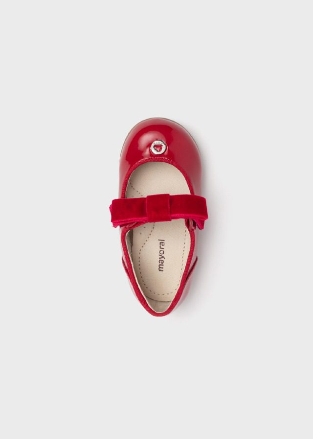 Lakované balerínky so zamatovou mašľou Mayoral červené