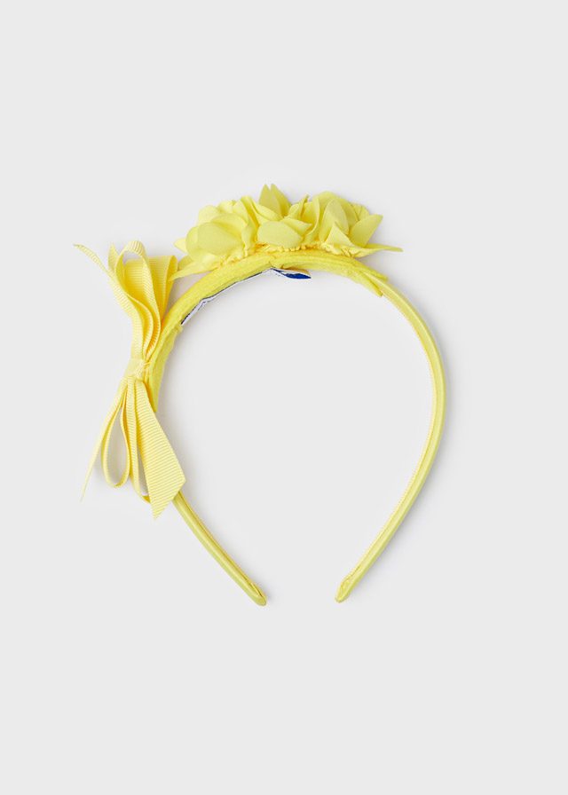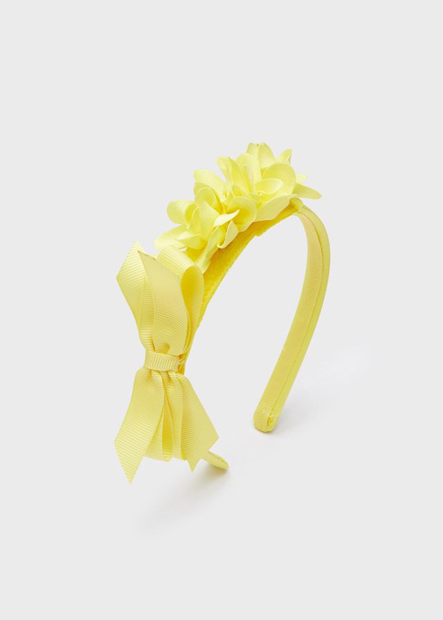 MAYORAL Čelenka s mašľou a tromi kvetmi žltá Flower bow hairband limon 10193
