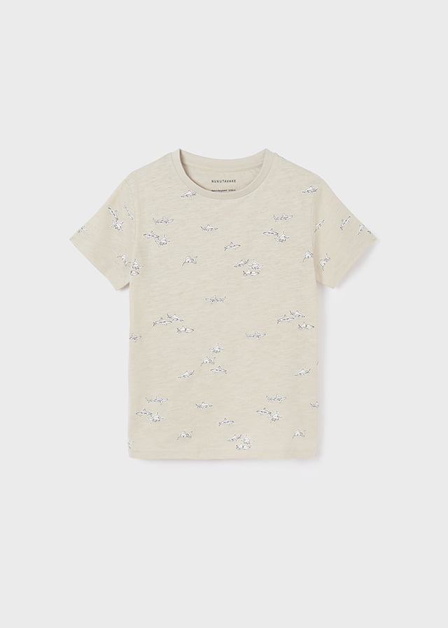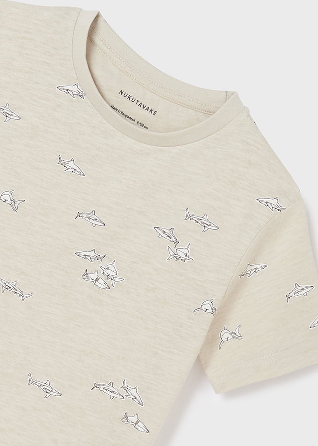 Chlapčenské tričko s krátkym rukávom v béžovej farbe s motívom žralokov.