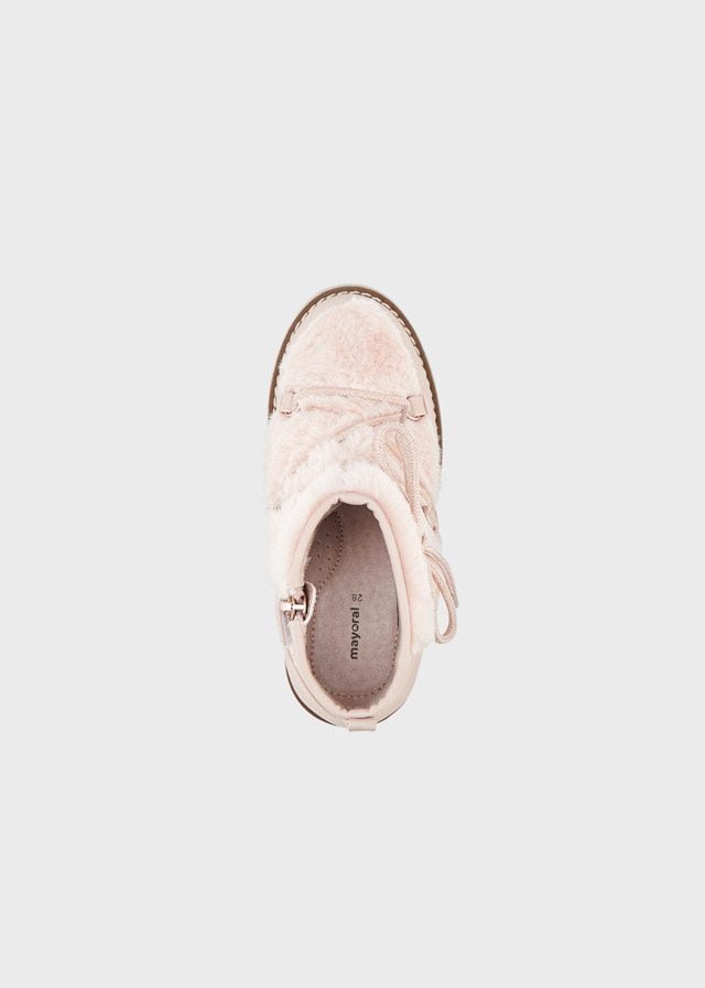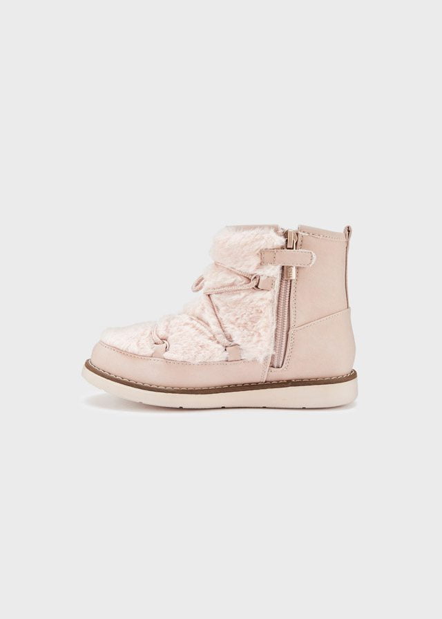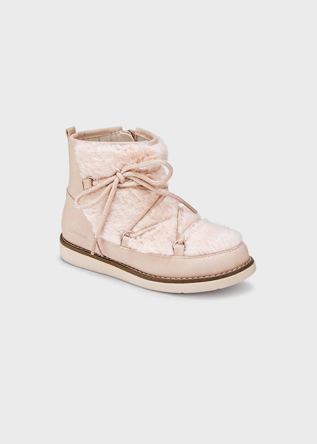 Essential boots for Girl 2 to 9 years to have in any child´s winter wardrobe. A practical shoe to protect from the cold. Shoes with cotton inner lining and leather insole. Non-slip sole for safe walking without the risk of slipping. Decorative elements: faux fur appliques.