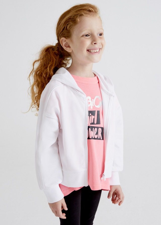 MAYORAL Dievčenská mikina s kapucňou Hoddie with zip biela 3428
