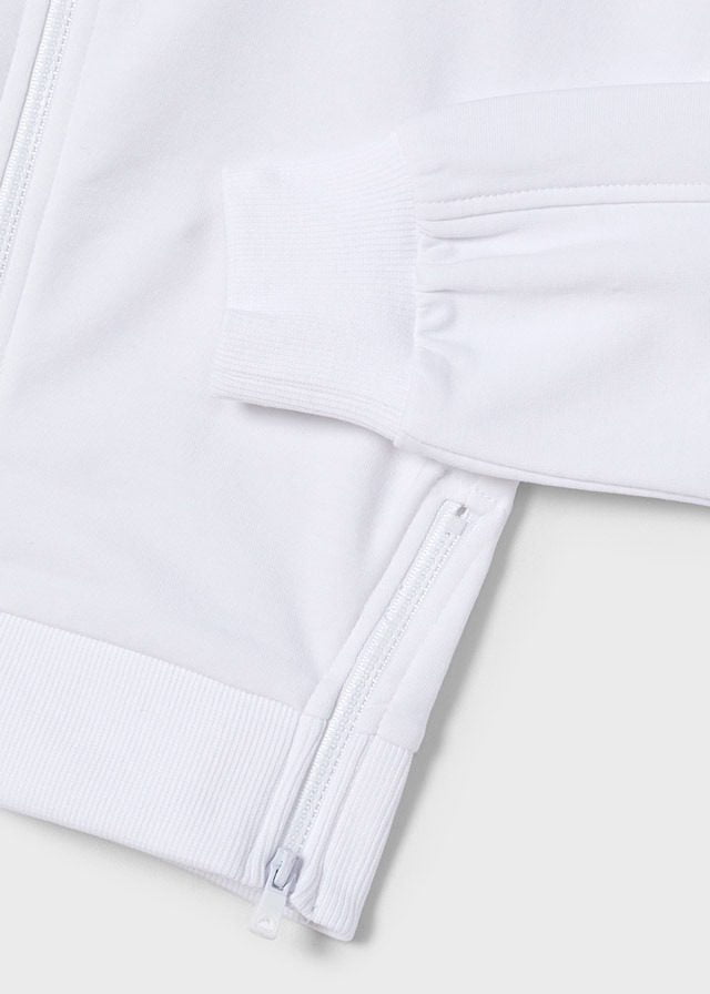 Dievčenská biela mikina na zips, s kapucňou z kolekcie Mayoral.