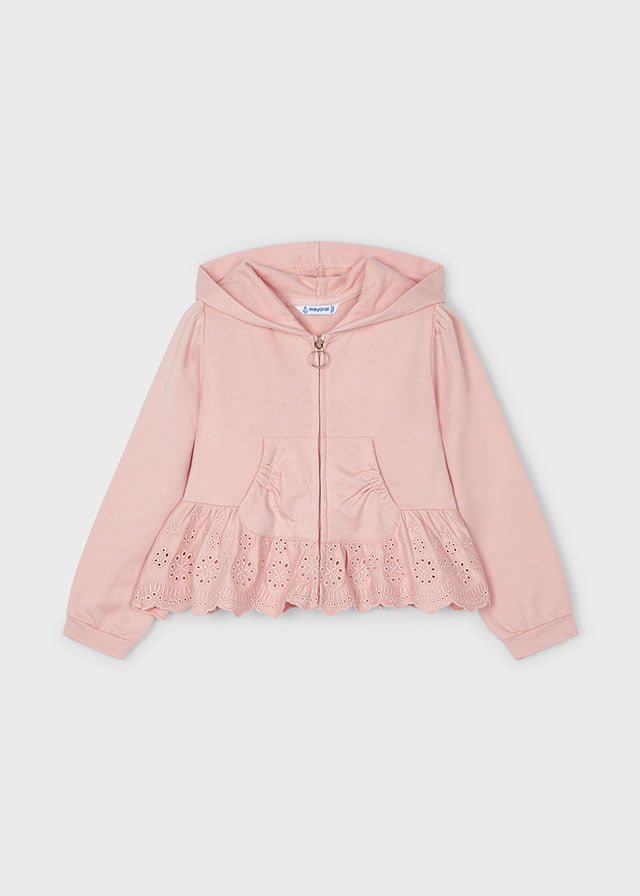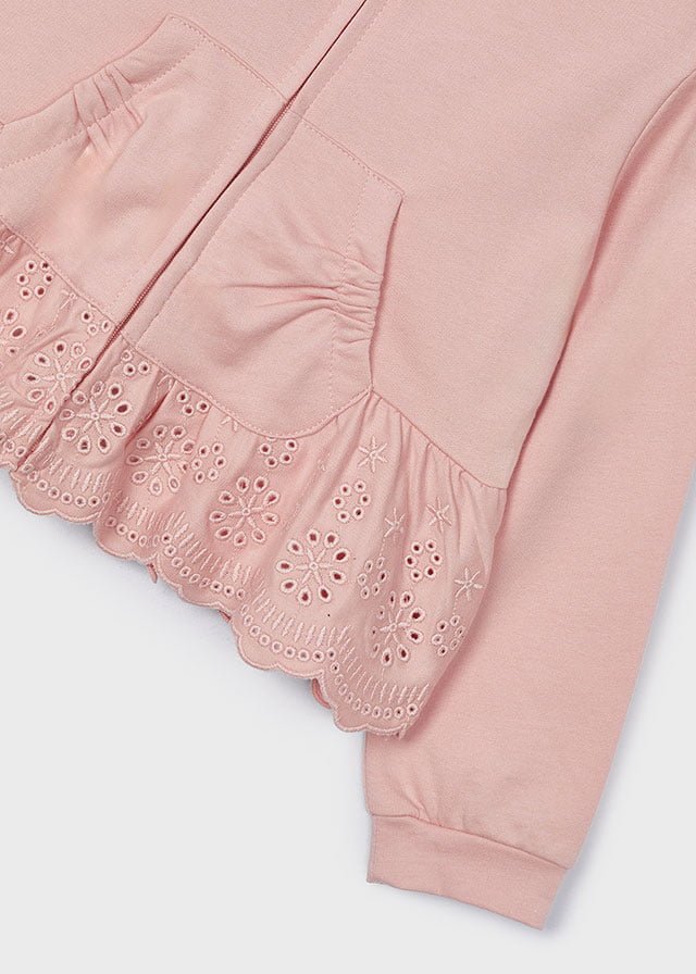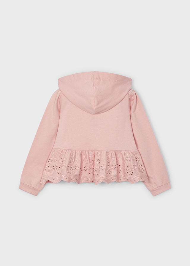 MAYORAL Dievčenská mikina s volánom a kapucňou ružová Girl zip ruffle hoodie blush 3477