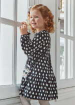 Long sleeved dress for girl. Patterned dress with bag.