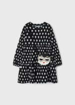 MAYORAL Dievčenské šaty so srdiečkami a s kabelkou čierne Patterned dress with bag black 4932