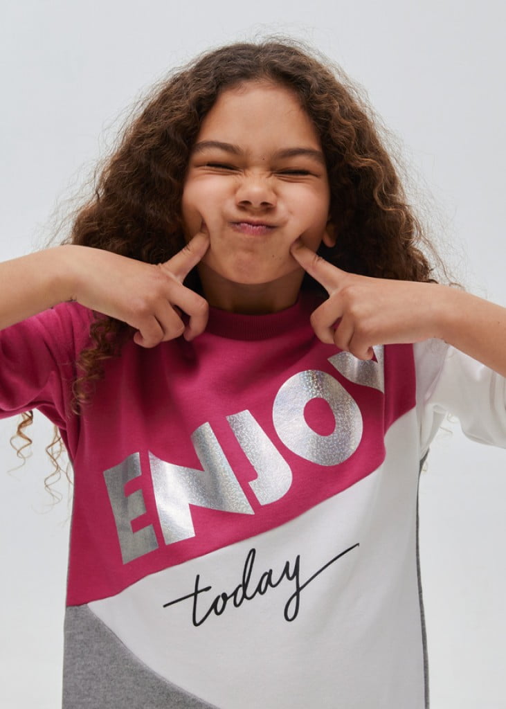 Dievčenské teplákové šaty s dlhým rukávom a s nápisom Materiál: 57% bavlna, 42% polyester, 1% elastan.