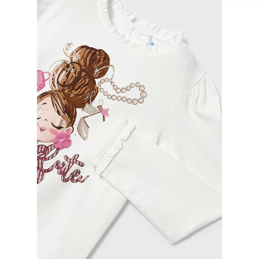 MAYORAL Dievčenské tričko s dlhým rukávom s potlačou biele Long sleeved tshirt natur 4004