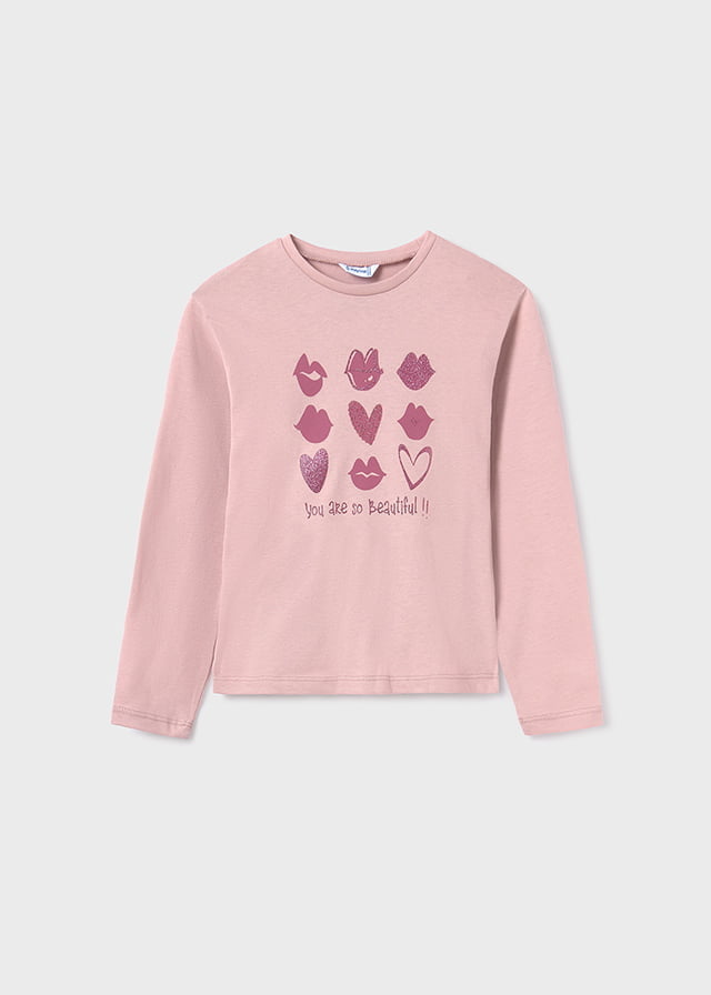MAYORAL Dievčenské tričko s dlhým rukávom s potlačou ružové Long sleeve tshirt pink 7048
