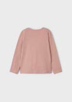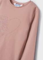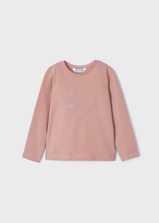 Dievčenské tričko s dlhým rukávom a jemnou potlačou srdiečka. Staroružová farba. Materiál: 95% bavlna, 5% elastan.