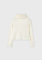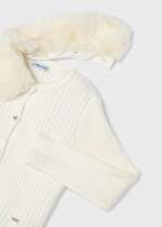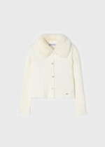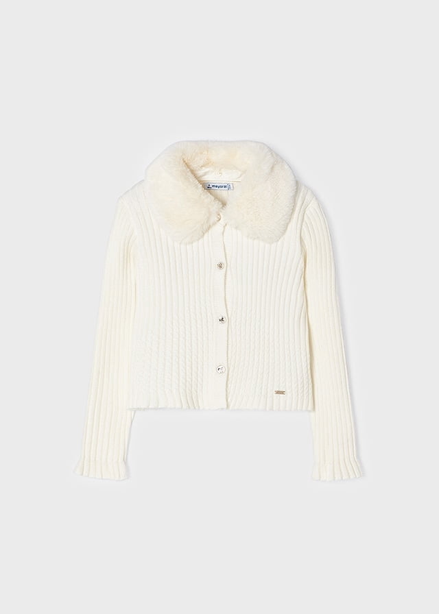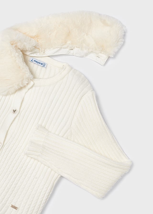 MAYORAL Dievčenský rebrovaný sveter s kožušinovým golierom na gombíky biely Cardigan white 4309