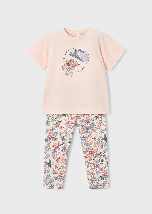 MAYORAL Legínový set s tričkom 3727 Printed leggings and tshirt salmon