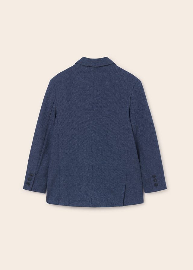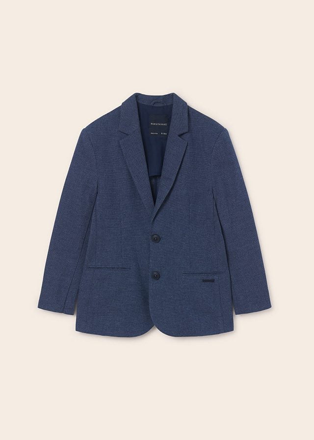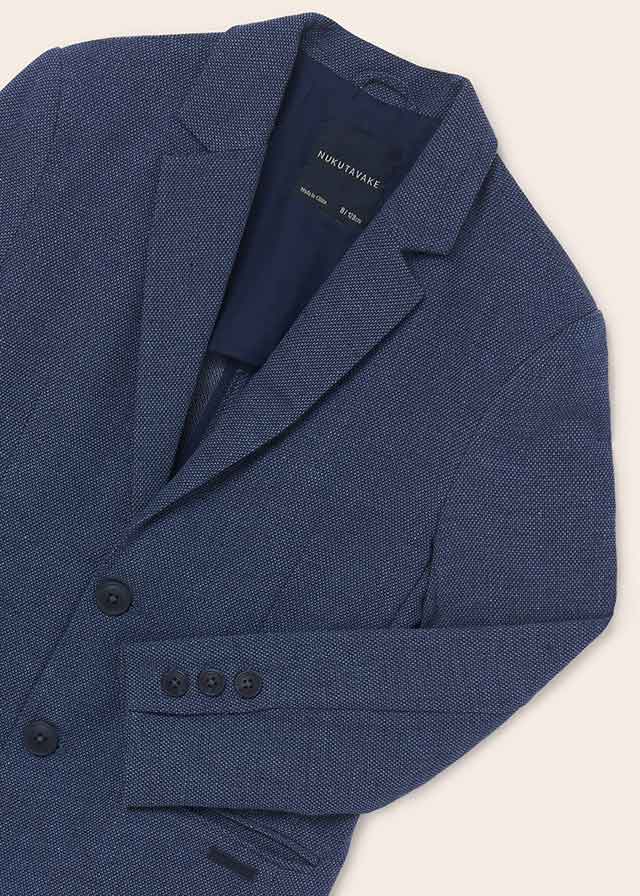 MAYORAL chlapčenské sako tmavomodrej farby so zapínaním na gombíky. Materiál: vrch 87% bavlna, 13% ľan, podšívka 80% polyester, 20% bavlna.