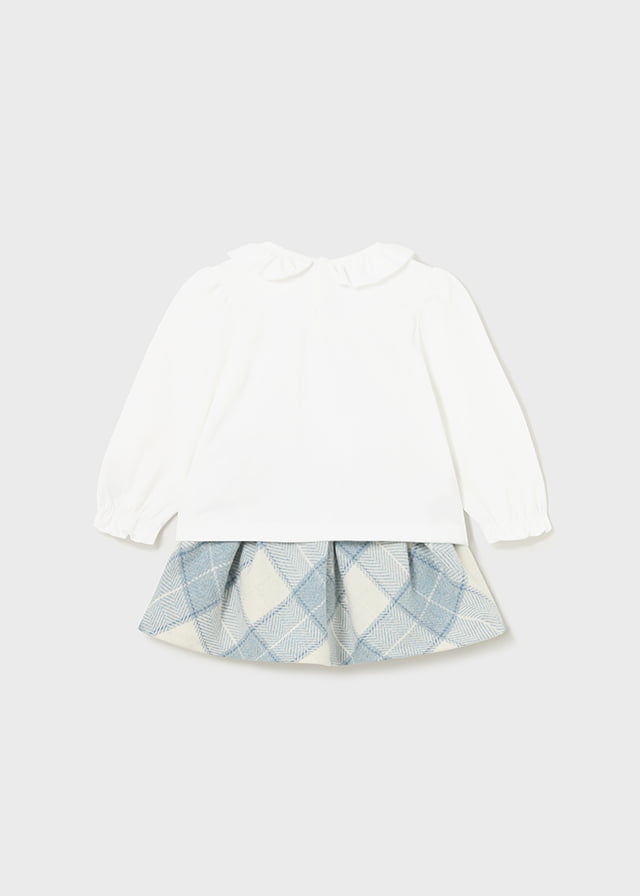 MAYORAL Sukňový set s tričkom s dlhým rukávom a károvanou sukňou modrý Plaid skirt set bluebell 2995