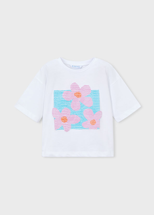 Hľadáte pre svoju dcéru tričko, ktoré je krásne a zároveň funkčné? Naše bavlnené tričko s tromi výraznými kvetmi je stvorené pre horúce dni. Priedušný materiál.