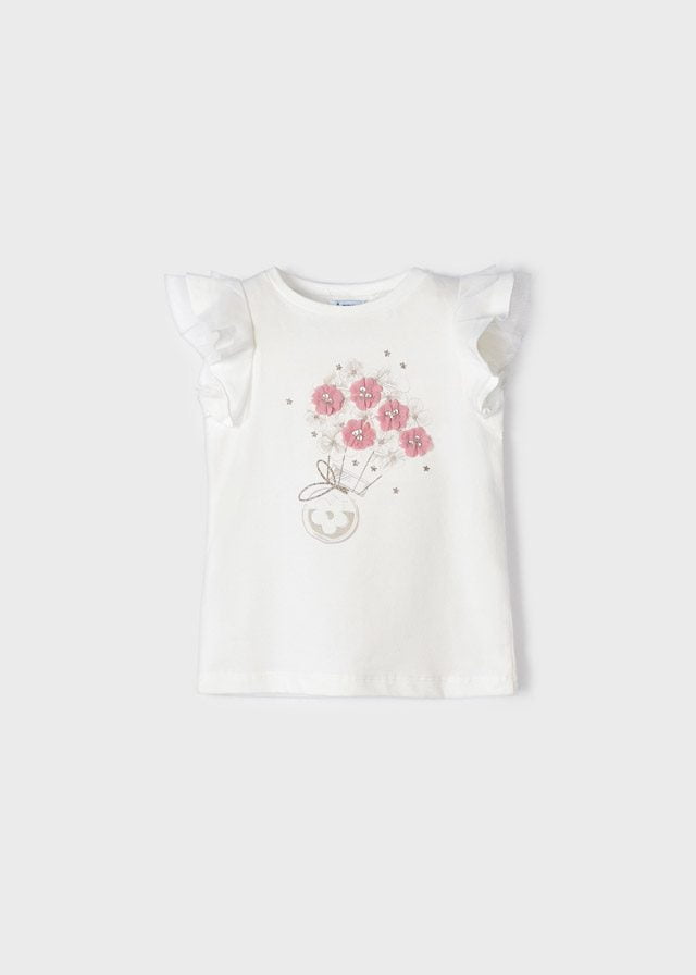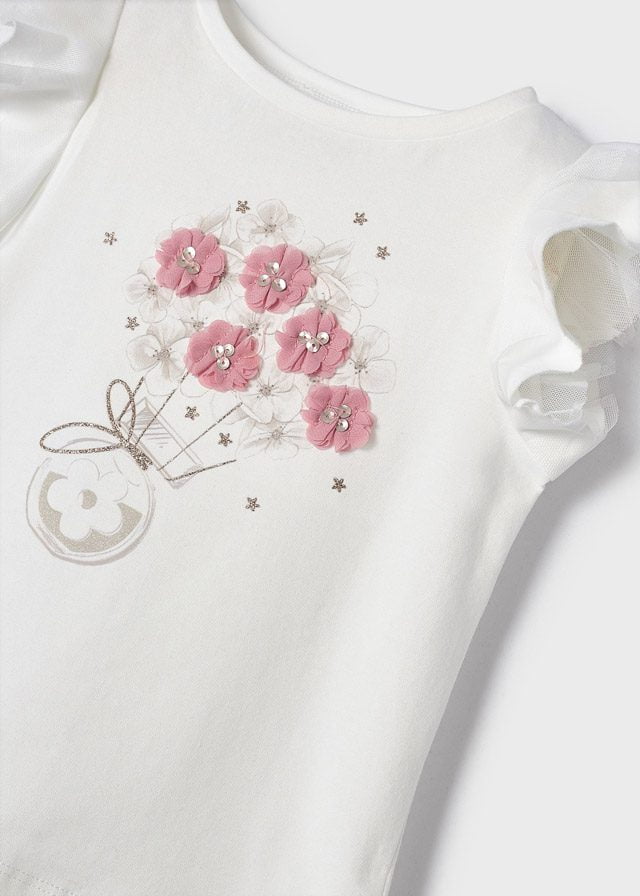 MAYORAL tričko s volánikmi a ružovými kvetinkami Tshirt with ruffle with pink flowers 3054