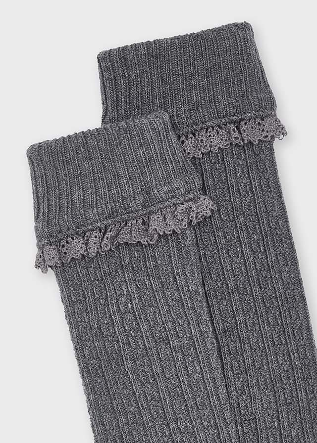 MAYORAL Vzorované pletené podkolienky s výšivkou sivé 10139