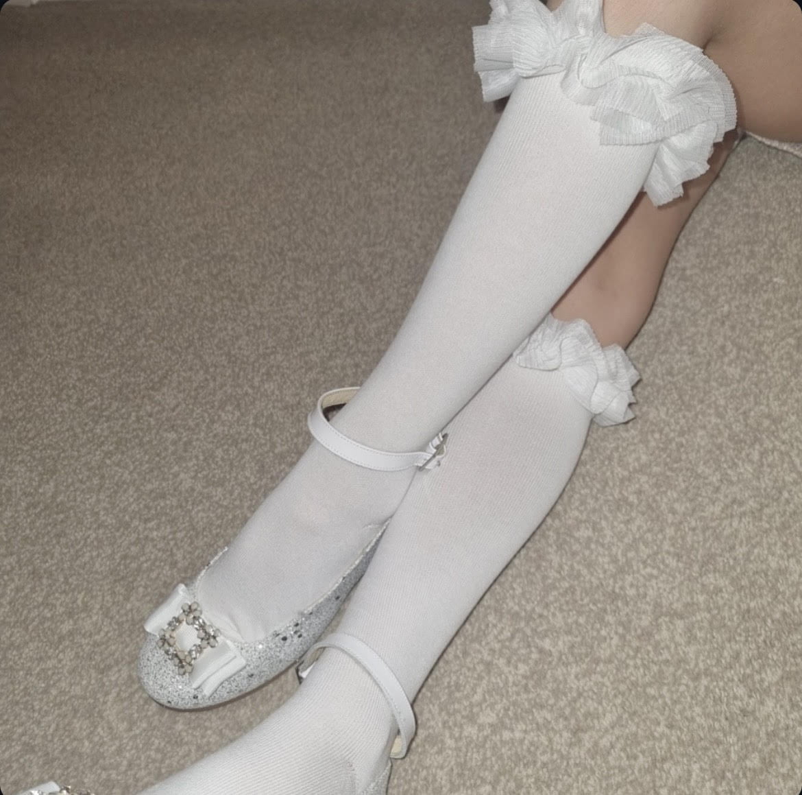 MEIA PATA Podkolienky s tylovým volánom biele Knee high socks dancers tulle white 1061M