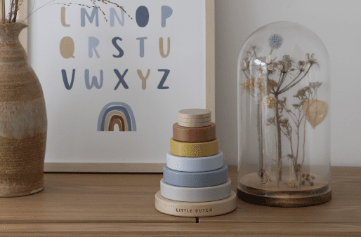 This playful stacking ring from Little Dutch’s Pure & Nature Collection encourages children to sort the wooden rings in size and stack them on the post in the correct order. This toy is designed to stimulate your child’s fine motor skills and contributes to a good hand-eye coordination. The Little Dutch stacking ring is also very suitable as a baby shower gift or a decorative item in the nursery. Made of FSC certified wood.