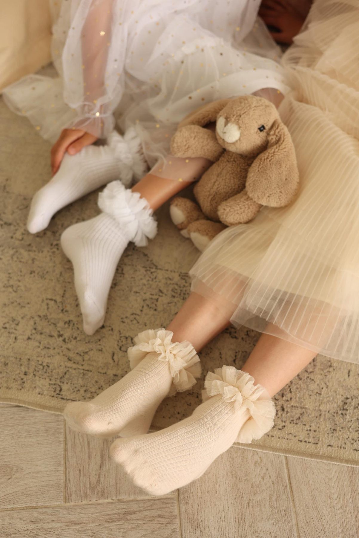 Princeznovské ponožky s nariaseným tylovým volánom. Elegancia v detaile. Premeňte bežný outfit na rozprávkový look! Tieto nádherné ponožky sú viac ako len doplnok. Sú šperkom, ktorý si každé dievčatko zamiluje. Jemný materiál dopĺňa bohatý, nariasený tylový volán, ktorý dodáva každému kroku ľahkosť a neprehliadnuteľný šarm. Sú ideálnym doplnkom k slávnostným šatám, sukniam, ale aj na oživenie každodenných šortiek. Materiál: 82% bavlna, 16% polyamid, 2% elastan.