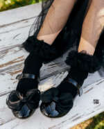 Tutu podkolienky čiernej farby. Bohatý nariasený tyl vytvára efekt baleríny, ktorý je veľmi trendový. Perfektný kúsok na špeciálne príležitosti, oslavy, alebo len tak, pre pocit princeznej každý deň. Štýlové dievčenské podkolienky s nariaseným tylovým volánom. Ideálne k sukni alebo šatám. Jemný a pohodlný materiál.