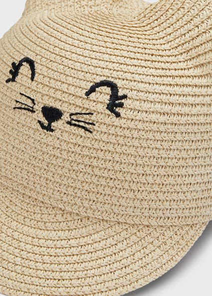 Pevný klobúk so šiltom, uškami a tváričkou pre dievčatká. Vyrobený zo 63% papiera a 37% polyesteru.