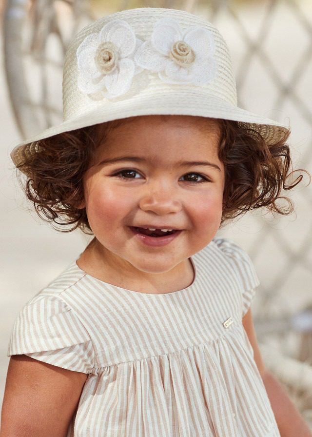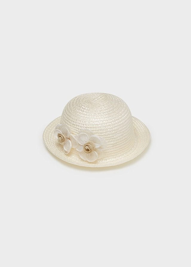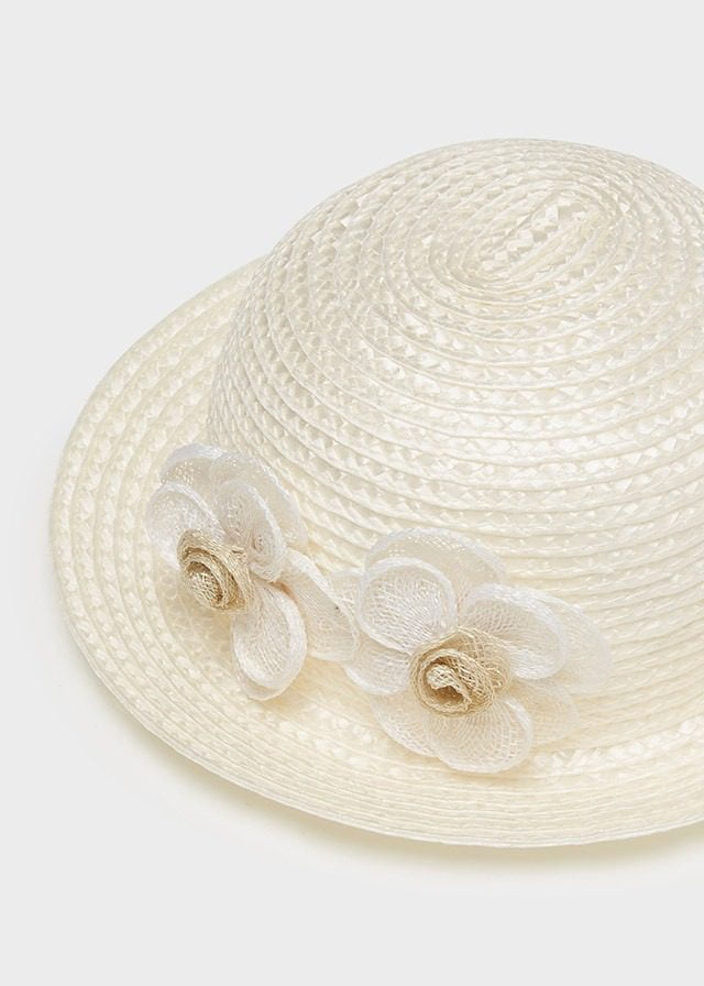Pevný letný rafia klobúk s kvetom Mayoral biely