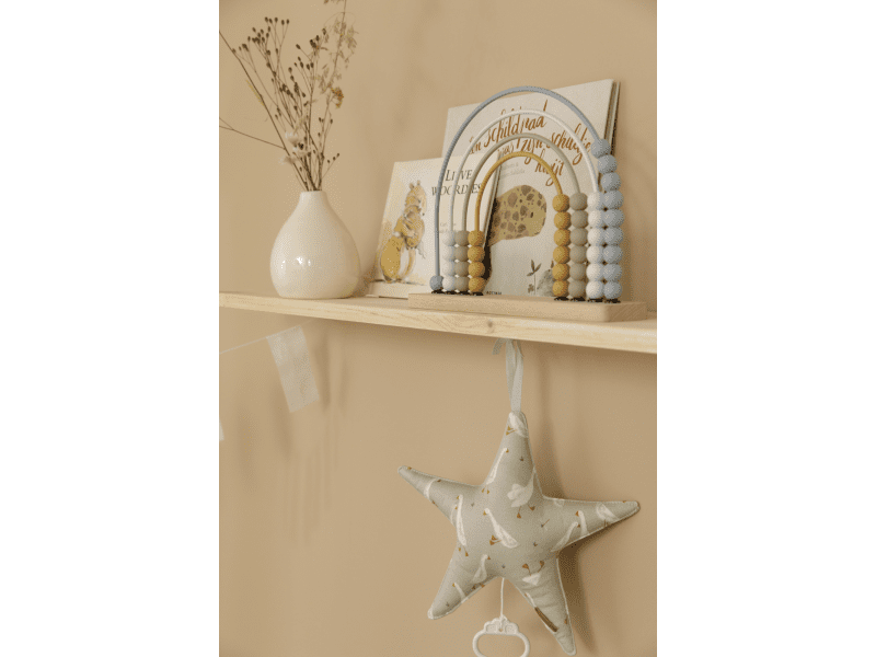 Learning to count will be more fun with the Little Dutch abacus. The rainbow is made of coloured metal arches on a wooden base with 10 wooden beads on each arch. The abacus is not only educational, but also looks nice in the play area, living room or child’s bedroom. Available in blue and pink.