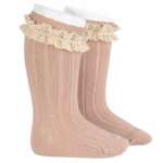 Podkolienky s jemnou vyšívanou čipkou teplé rebrované Cóndor old rose staroružové