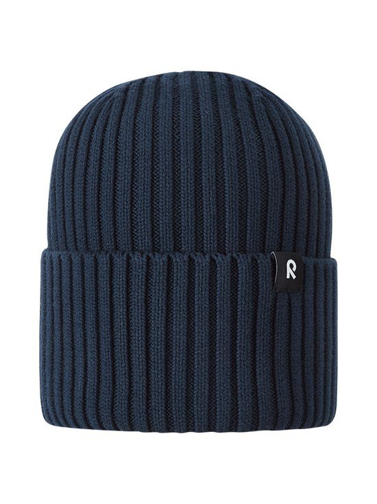 REIMA čiapka Hattara tmavomodrej farby, ktorá je vyrobená z pružného rebrovaného úpletu. Materiál: 100% bavlna.