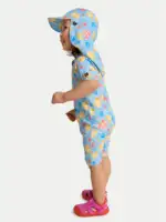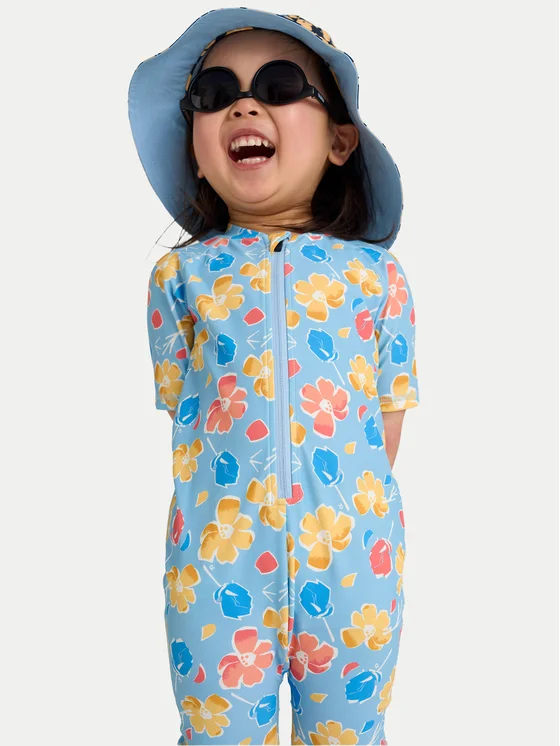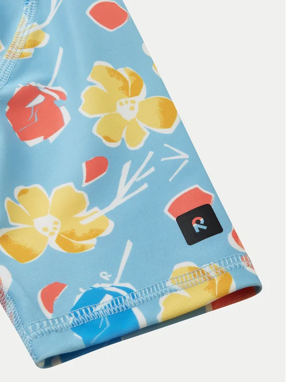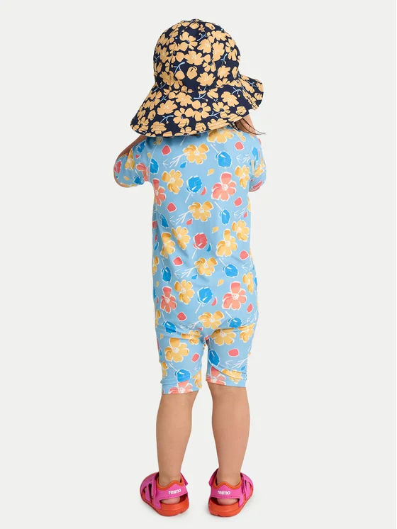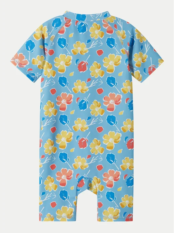 Dievčenské plavky s potlačou kvetín. UV ochranný faktor 50+ poskytne chráni počas pobytu na slnku. Rukávy po lakte a nohavice po kolená. Dlhý zips uľahčuje obliekanie. Materiál: 83% polyester, 17% elastan.