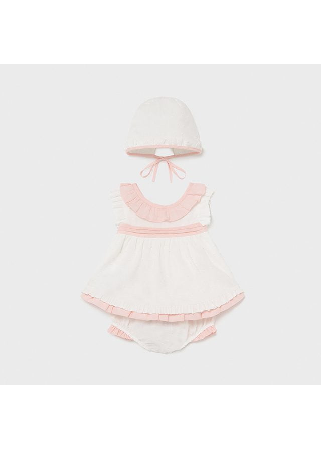 Šaty na krst s čiapkou a nohavičkami newborn Mayoral biele
