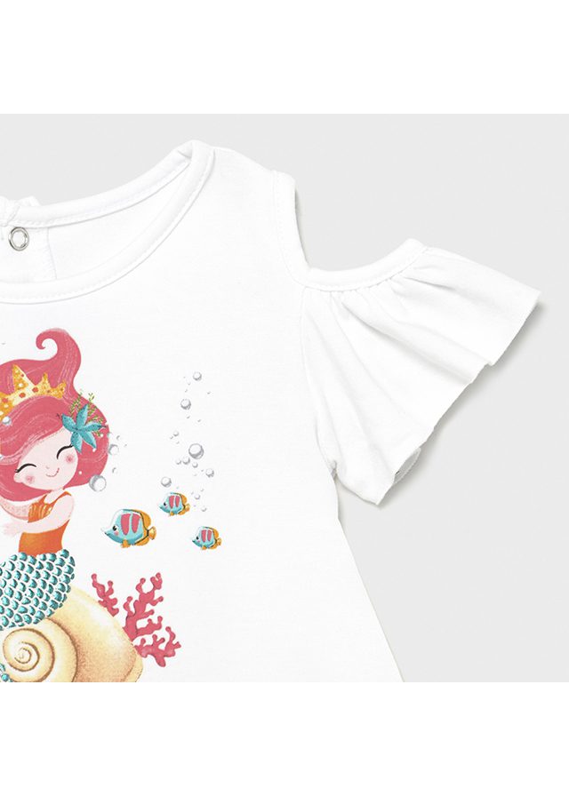 Šaty s krátkym rukávom Mayoral. Šaty s tylovou kockovanou sukňou. Šaty s potlačou morskej panny.