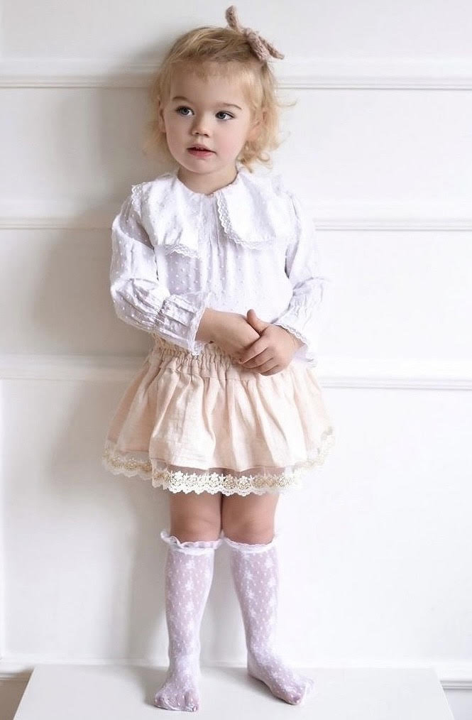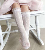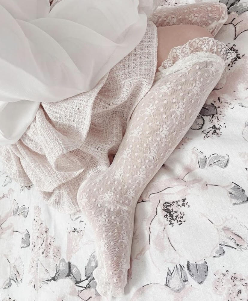 CÓNDOR Sieťované podkolienky s bodkami, kvetmi a volánom biele bez mašle Ceremony silk lace knee high tights white 4502