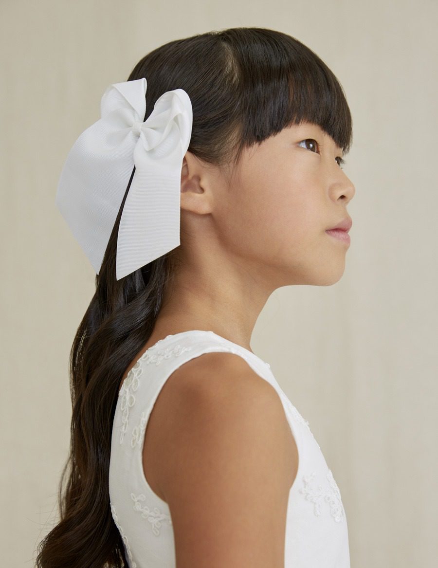 Krásna veľká mašľa do vlasov. Snehovobiela spoločenská mašľa pre dievčatá.