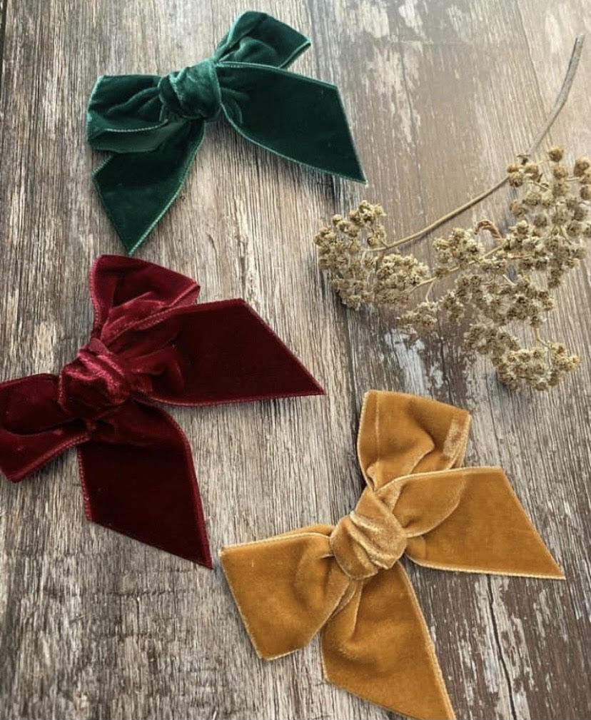 Veľká zamatová mašľa na klip tmavozelenej farby. Krásna vianočná farba mašle. Šírka mašle 10 cm. Mašľa vhodná od 3 rokov.