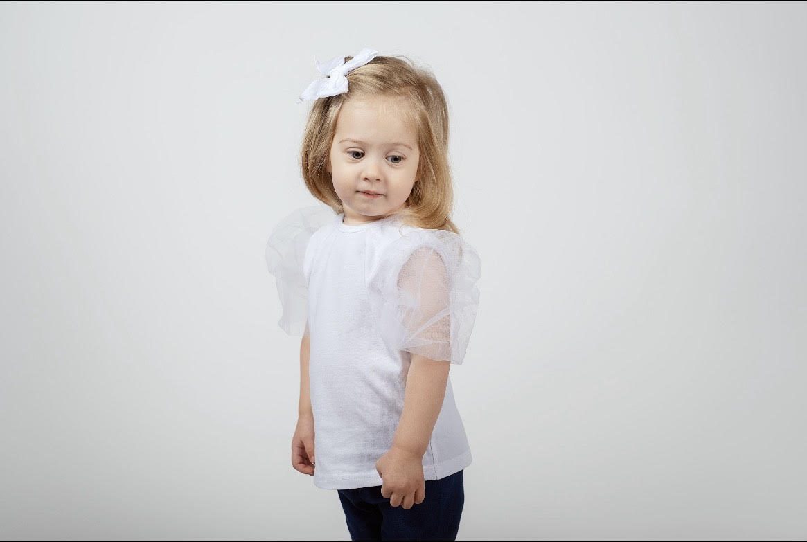 W BABY Tričko s tylovými rukávmi biele Tshirt Tulle Sleeves white