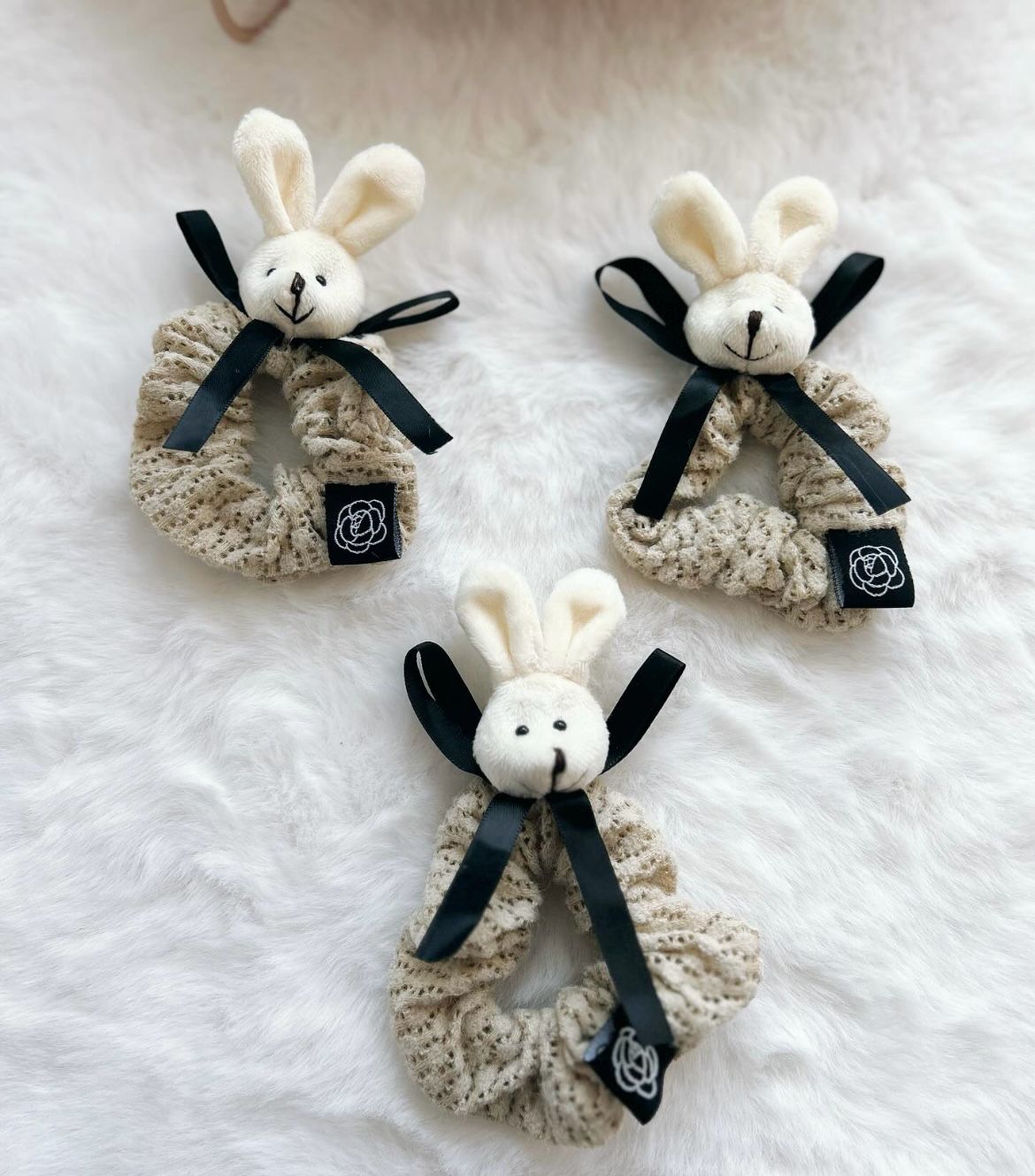Veselá gumička s roztomilým zvieratkom zajkom a malou mašličkou v béžovej farbe. Elegantná gumička, ktorá oživí každý účes. A deti ju milujú! Gumička vhodná ako darček.