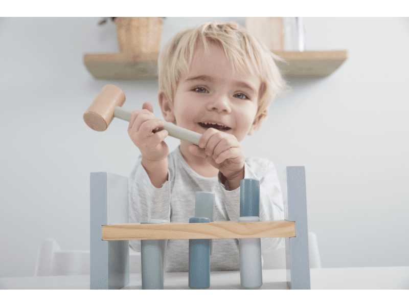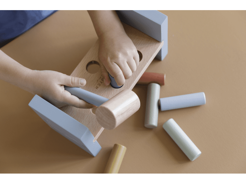Rozvíjanie koordinácie rúk a očí nebolo nikdy zábavnejšie ako s touto drevenou zatĺkačkou Little Dutch! Klepnite na krásne neutrálne drevené kolíky otvormi nadol a zatĺkajte. Potom otočte zatĺkačku a začnite znova! Táto drevená zatĺkačka sa dodáva s robustným kladivom. Pomáha rozvíjať obratnosť a koordináciu.